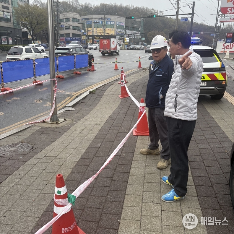 (매일뉴스=인천 검단 ) 조종현 기자 = 김진규 검단구청장 예비후보가 10일 오전 8시 인천 서구 당하동 일대에서 발생한 대형 싱크홀 현장 두 곳을 방문해 긴급 안전 점검을 실시했다. 앞서 9일 독정역 인근 6차선 도로에서 가로 5m 규모의 땅 꺼짐이 발생해 경찰이 통제 중이다.