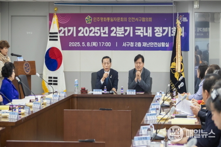 [매일뉴스] 민주평화통일자문회의 인천서구협의회는 지난 8일 서구청 재난안전상황실에서 강범석 서구청장, 자문위원 등 40명이 참석한 가운데 ‘대내외 환경 변화와 통일․대북정책 추진 방향’을 주제로 ‘2025년 2분기 정기회의’를 개최했다고 12일 밝혔다.