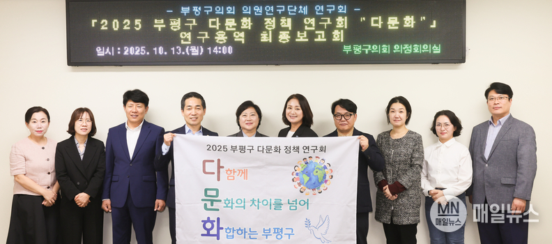 [매일뉴스] 인천 부평구의회 의원연구단체인 「2025 부평구 다문화 정책 연구회 “다함께 문화의 차이를 넘어 화합하는 부평구”(대표의원 허정미)」가 10월 13일 ‘부평구 다문화 특성화 사업 개발 연구용역’ 최종보고회를 가졌다.