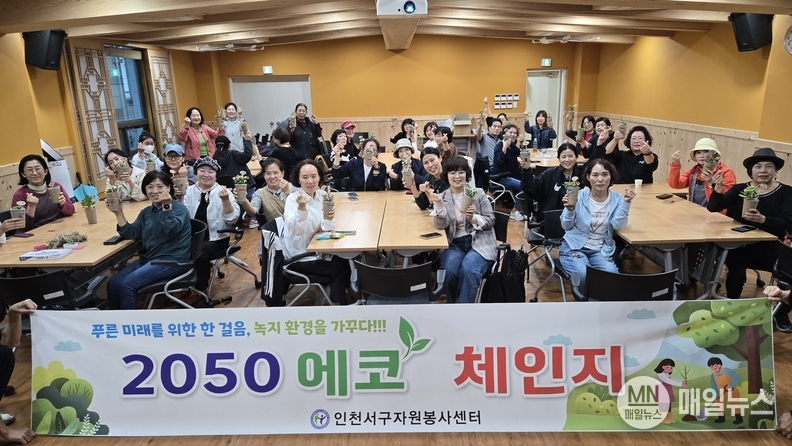 [매일뉴스] 인천시 서구자원봉사센터는 지난 13일 자원봉사자 40여 명이 참여한 가운데 ‘2050에코체인지 나만의 반려화분 만들기’를 진행했다.