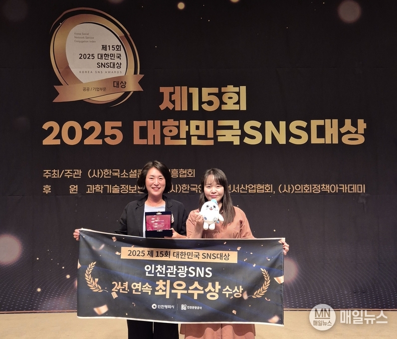 인천광역시(시장 유정복, 이하 시)와 인천관광공사(사장 백현, 이사 공사)는 인천관광 SNS가‘2025 대한민국 SNS 대상’ 공공부문에서 최우수상을 수상하며, 2년 연속 수상의 영예를 안았다고 밝혔다.
