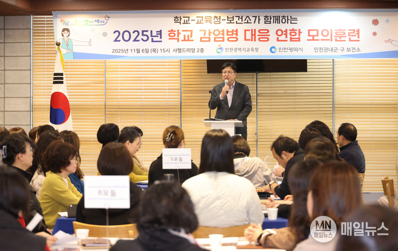[매일뉴스] 인천시교육청(교육감 도성훈)은 6일, 시·군·구 보건소 역학조사관, 감염병 전문가, 학교 감염병 관리조직 등 100여 명이 참여한 ‘학교 감염병 대응 연합 모의훈련’을 실시했다.