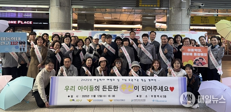 [매일뉴스] 부평구(구청장 차준택)는 지난 12일 부평역사에서 아동학대 예방의 날(11월19일)을 기념해 아동학대 대응 유관기관과 합동 캠페인을 진행했다.