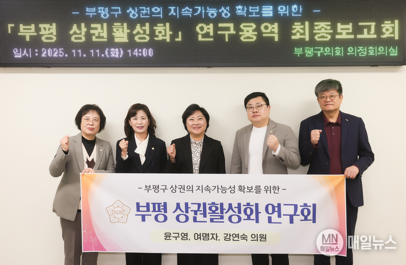 [매일뉴스] 인천 부평구의회 의원연구단체인 “부평 상권활성화 연구회(대표의원 윤구영)”는 지난 11일 부평구의회 의정회의실에서 부평 상권활성화를 주제로 하는 연구용역 최종결과를 보고 받았다.