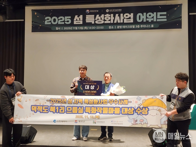 [매일뉴스] 옹진군(군수 문경복)은 덕적도 북1리 으름실 마을이 행정안전부 ‘2025년 섬 지역 특성화사업 우수사례 경진대회’에서 대상을 수상했다고 밝혔다.