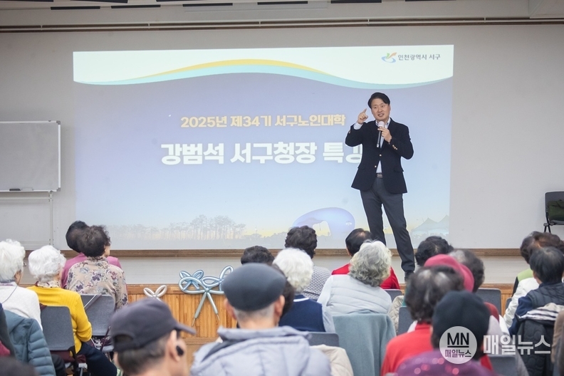 [매일뉴스] 인천 서구(구청장 강범석)는 지난 19일 서구 노인복지관 대강당에서 대한노인회 인천서구지회(회장 조재길) 부설 서구노인대학(학장 김건수) 어르신들을 대상으로 특별 강의를 진행했다.