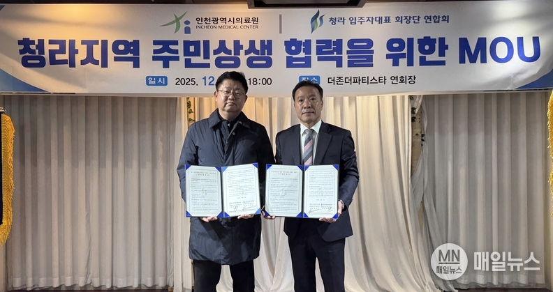 인천광역시의료원(원장 장석일)은 2025년 12월 5일(금), 청라국제도시 공동주택 단지를 대표하는 청라 입주자대표회장단 연합회와 지역 주민의 건강증진과 의료 접근성 향상을 위한 업무협약(MOU)을 체결했다고 밝혔다.