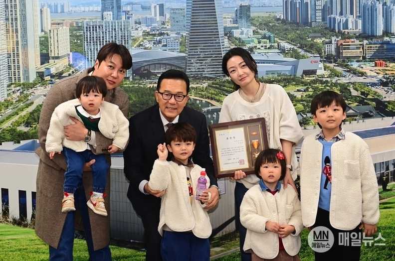 [매일뉴스] 연수구(구청장 이재호)는 지난 11일 출산과 양육 친화적 사회 분위기 조성에 이바지한 다자녀 모범가정 2가족과 아이돌보미 1명, 임산부 무료 음식 제공 식당 1곳에 ‘2025년 저출산 극복 유공자’ 표창장을 수여했다.