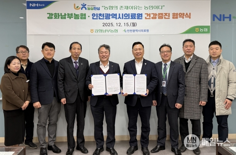 강화남부농협 공중기 조합장은 “이번 협약은 조합원과 임직원의 건강 관리와 복지 증진을 위한 기반을 마련했다는 점에서 의미가 있다”며 “앞으로도 조합원 복지 향상을 위해 인천의료원과 지속적으로 협력해