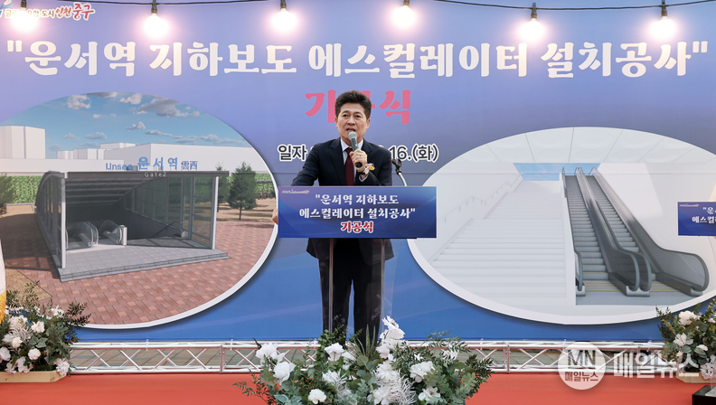 인천시 중구(구청장 김정헌)는 지난 16일 오후 공항철도 운서역 2번 출입구 일원에서 ‘운서역 지하보도 에스컬레이터 설치 공사 기공식’을 개최했다.
