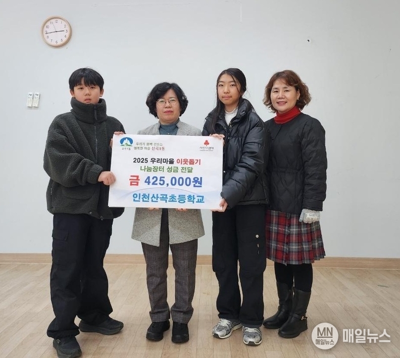 전미희 산곡1동장은 “학생들이 자발적으로 마련한 정성이 담긴 성금이라 더욱 감사하다”며 “전달받은 성금은 도움이 필요한 어려운 이웃을 위해 소중히 사용하겠다”고 전했다.