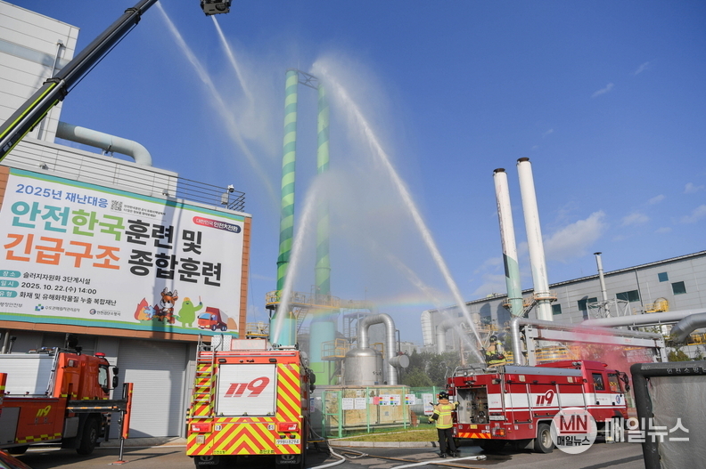수도권매립지관리공사는 지난 10월 22일 인천 서구청, 검단소방서 등 12개 지역 유관기관·단체, 총 280명이 참여한 가운데, 수도권매립지 슬러지자원화 시설에서 화재·폭발과 유해화학물질 누출 등 복합재난을 가정한 대응 훈련을 실시했다.