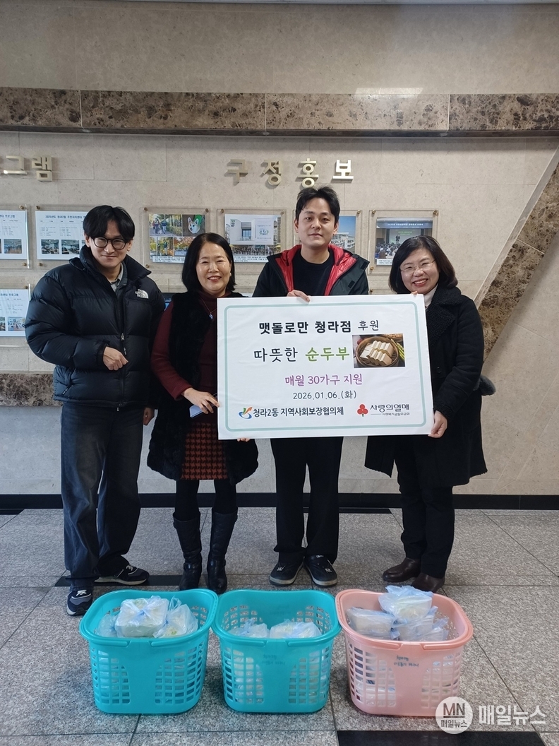 한편, 청라2동 지역사회보장협의체는 지난해부터 맷돌로만 청라점의 순두부 후원 이외에도 추가 부식을 마련해 관내 LH아파트 저소득 가정을 직접 방문·전달하는 활동을 이어가며 복지 사각지대 해소에 힘쓰고 있다.