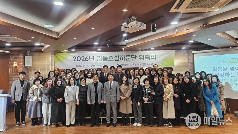 [매일뉴스] 인천광역시교육청(교육감 도성훈)은 13일 샤펠드미앙에서 학교 내 갈등의 교육적 해결과 관계 회복 지원을 위한 ‘2026학년도 갈등조정자문단 위촉식’을 개최했다.