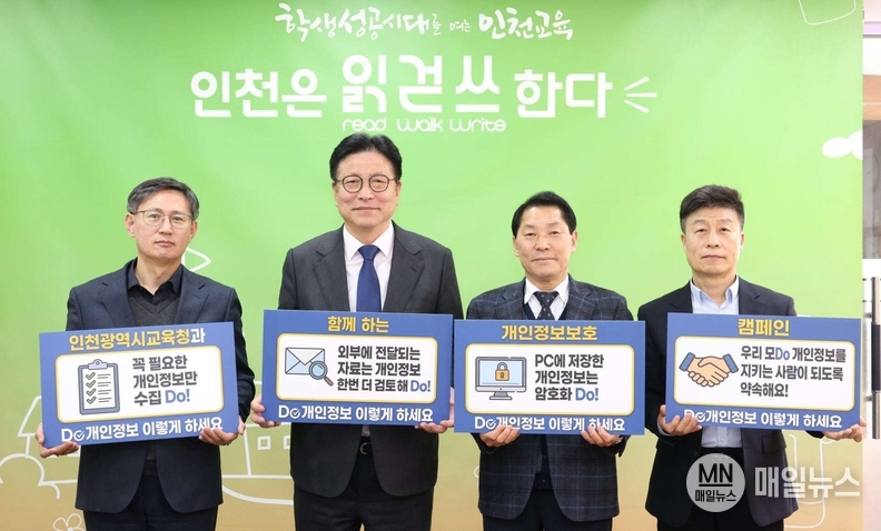 [매일뉴스] 인천광역시교육청(교육감 도성훈)은 개인정보 보호의 중요성을 알리고 경각심을 고취하기 위해, 이달 3일부터 ‘개인정보 보호 캠페인’을 추진한다.