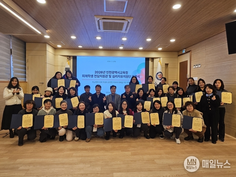 [매일뉴스] 인천광역시교육청(교육감 도성훈)은 학교폭력 피해학생의 심리적 회복과 안정적인 학교 복귀를 지원하기 위해 ‘2026학년도 학교폭력 피해학생 전담지원관 역량강화 연수 및 위촉식’을 개최했다고 5일 밝혔다.