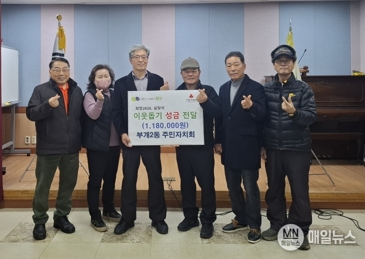 [매일뉴스] 부평구 부개2동은 지난 11일 부개2동 주민자치회로부터 ‘설 이웃사랑 나눔 성금’ 118만 원을 전달 받았다고 밝혔다.