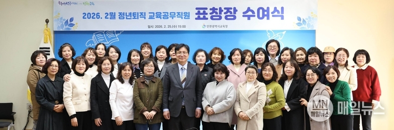 도성훈 인천광역시교육감은 25일, 2026년 3월 1일 자로 정년퇴직하는 교육공무직원 56명에게 교육감 표창을 수여했다.