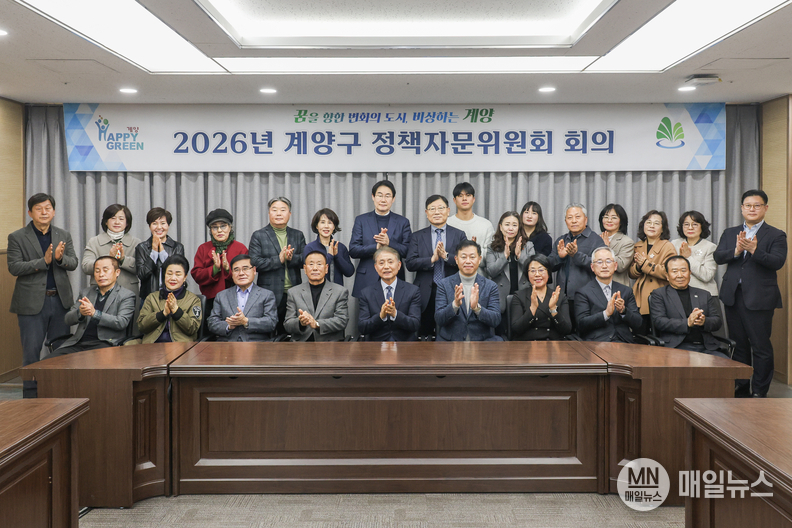 [매일뉴스] 인천 계양구(구청장 윤환)는 구정 주요 현안과 정책 과제에 대한 전문가 의견을 수렴하고 발전 방향을 모색하기 위해 11일 구청 영상회의실에서 ‘2026년 제1회 정책자문위원회’를 개최했다.