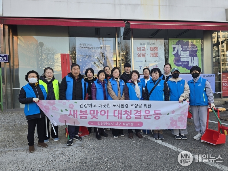[매일뉴스] 인천 서구 석남1동 행정복지센터(동장 김소연)에서는 이달 3주간 통장자율회 회원들과 함께 ‘우리동네 새단장 캠페인’과 연계해 2026년도 새봄맞이 대청결 운동을 실시했다고 밝혔다.