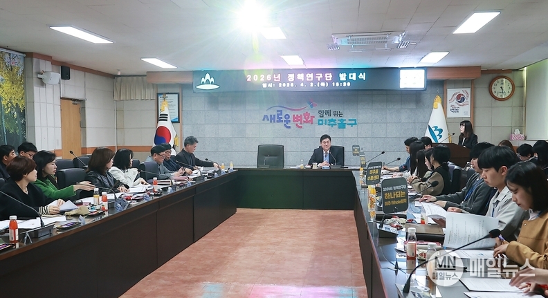 [매일뉴스] 인천 미추홀구(구청장 이영훈)는 지난 2일 구청 중회의실에서 ‘2026년 정책연구단 발대식’을 개최하고 구정 전반의 정책 방향과 연계한 정책 발굴에 본격적으로 착수했다.
