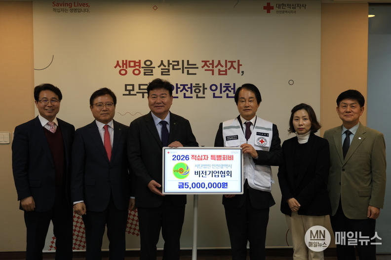 [매일뉴스] 대한적십자사 인천지사(회장 조의영)는 지난 10일 인천비전기업협회로부터 취약계층 지원을 위한 특별회비 500만원을 전달받았다고 밝혔다.