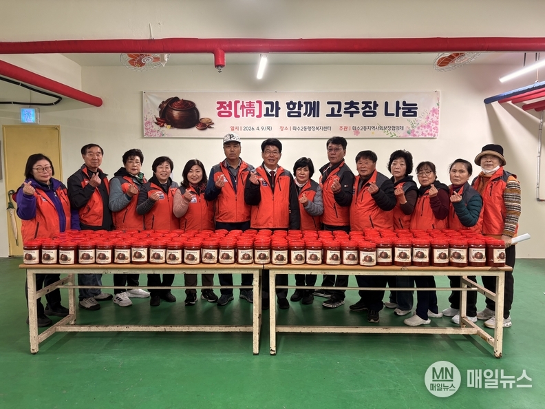 [매일뉴스] 인천 동구 화수2동 지역사회보장협의체(민간위원장 강상원)는 지난 9일 취약계층 85가구에‘정(情)과 함께 고추장 나눔’을 진행했다고 밝혔다.