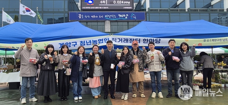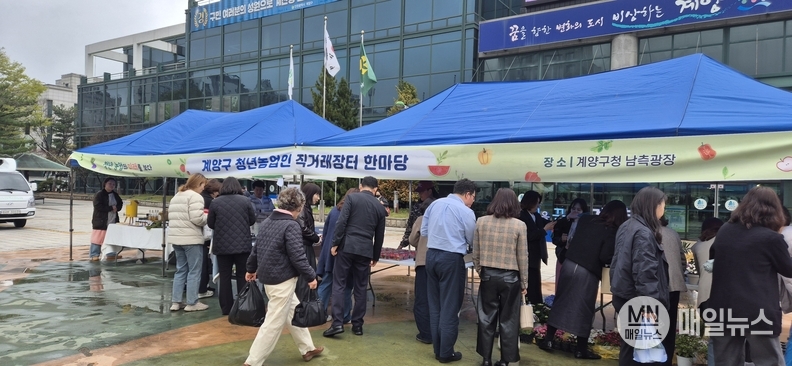 [매일뉴스] 인천 계양구(구청장 윤환)는 지난 10일 구청 남측광장에서 열린 금요 농산물 직거래 장터에 청년농업인들이 참여해 지역 농산물 소비 촉진과 판로 확대의 계기를 마련했다고 밝혔다.
