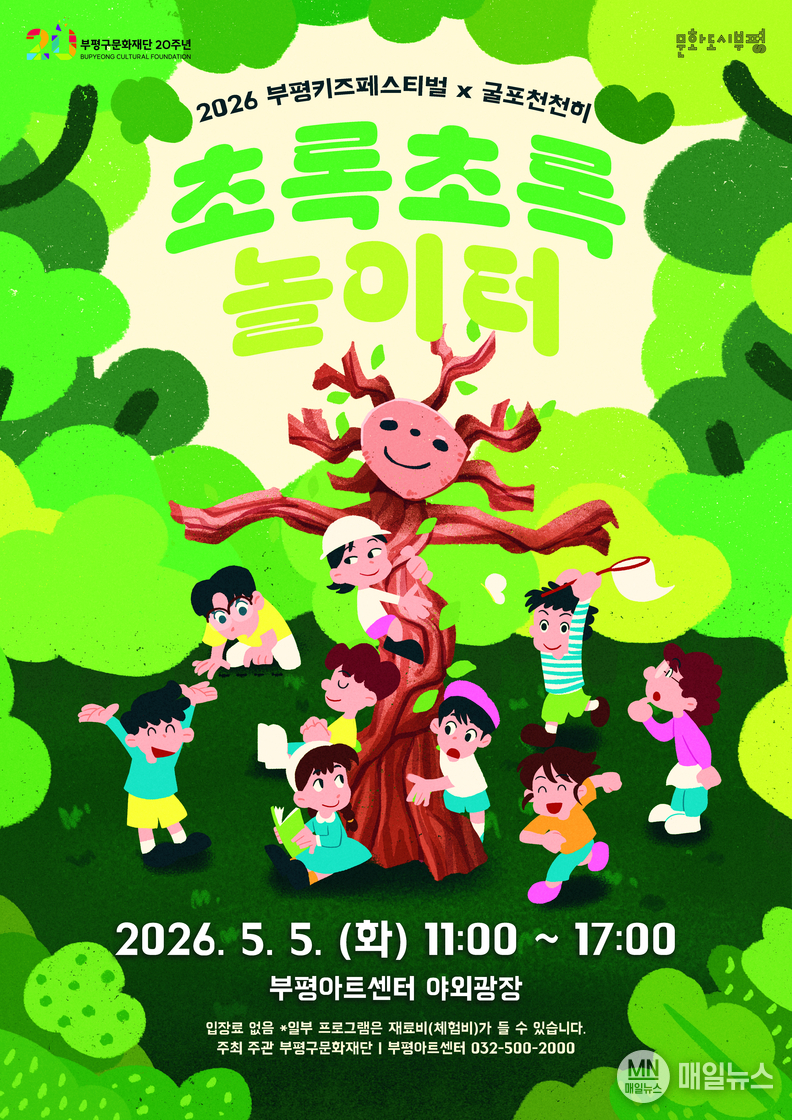 [매일뉴스] 부평구문화재단은 어린이날인 5월 5일 부평아트센터 야외광장과 잔디마당에서 ‘2026 부평키즈페스티벌 × 굴포천천히’의 일환으로 ‘초록초록 놀이터’를 개최한다.