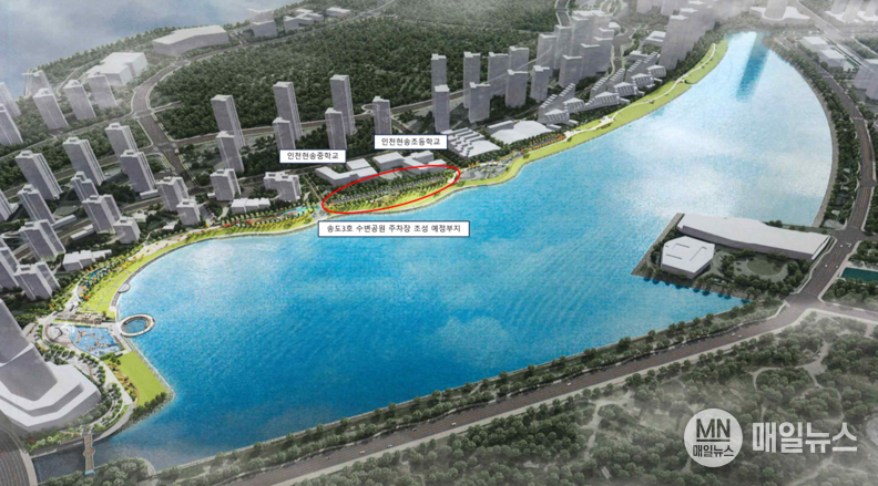 [매일뉴스] 송도 3호 수변공원 조성 사업의 일환으로 진행되는 인천 현송초등학교·현송중학교 후면부 주차장 조성 사업이 변경될 전망이다.