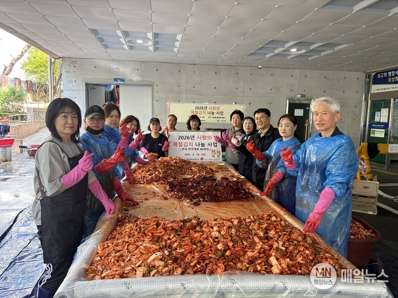 [매일뉴스] 인천 서구 검단동 희망우산 지역사회보장협의체(공동위원장 김명진ˑ문미경)는 지난 18일 관내 저소득 독거 중장년 및 어르신을 위한 ‘제철김치 담금 및 나눔행사’를 실시하였다.
