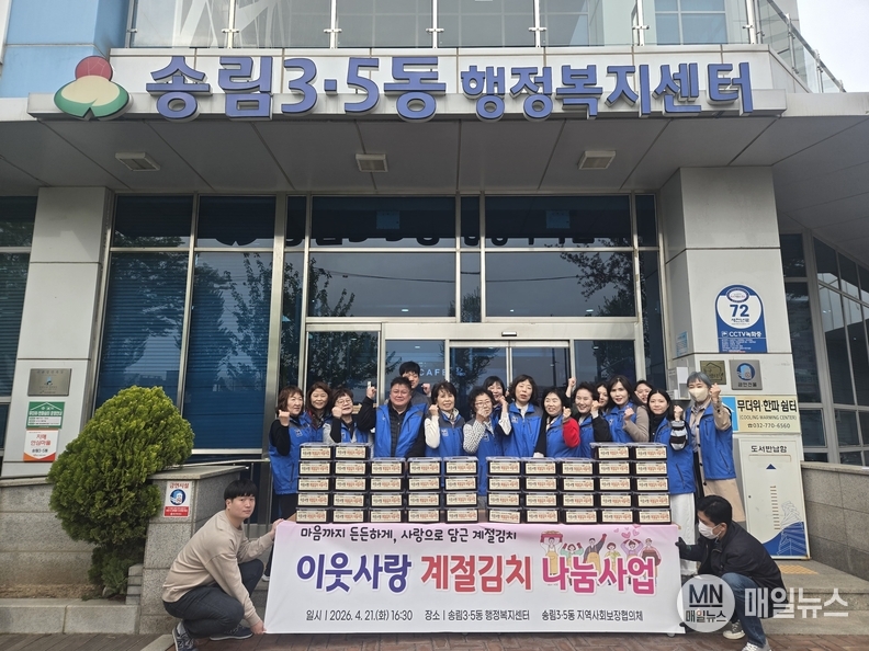 [매일뉴스] 인천 동구 송림3‧5동 지역사회보장협의체(민간위원장 정순자)는 지난 21일 취약계층 세대를 위한 ‘이웃사랑 계절김치 나눔사업’을 진행하였다고 밝혔다.