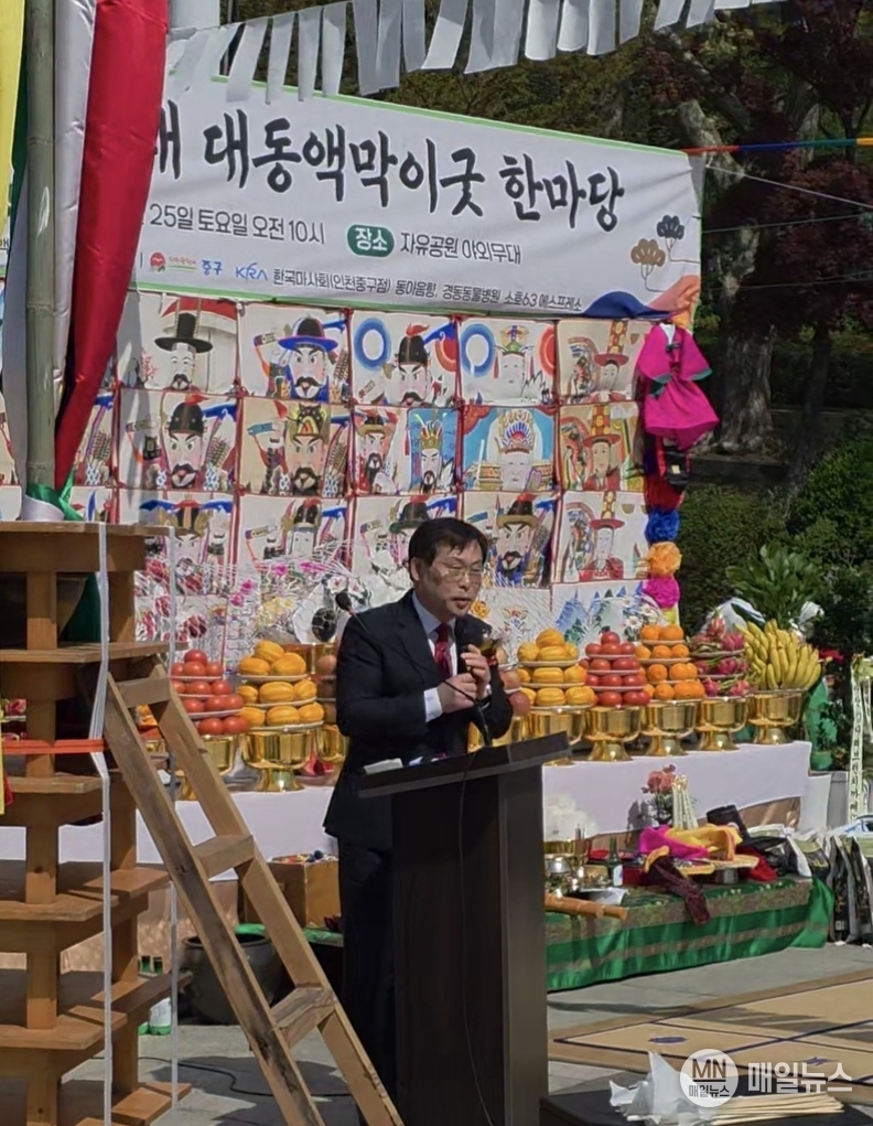 [매일뉴스] 인천 중구의회는 지난 25일 자유공원 광장에서 열린 ‘제30회 싸리재 대동액막이굿 한마당’에 참석하여 지역 고유 전통문화의 가치를 되새기고 주민들의 안녕과 화합을 기원했다.