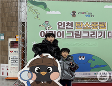 [매일뉴스] 인천광역시(시장 유정복)는 12월 8일부터 10일까지 시청 본관 중앙홀에서 개최한 ‘인천 어린이 탄소중립 그림전시회’를 성황리에 마무리했다고 밝혔다. 이번 전시에는 인천 어린이 탄소중립 그림그리기 대회 수상작 67점이 시민들에게 공개돼 큰 관심을 모았다. 어린이들은 ▲일상 속 탄소중립 실천 ▲기후변화 문제 ▲지속가능한 미래도시 인천 등을 다양한 시각과 상상력으로 표현해 관람객들로부터 높은 호응을 받았다. 또한 인천시가 운영하는 인천 탄소중립 청년 서포터즈 활동 영상 70여 편도 함께 상영돼 청년세대의 기후실천 메시지를 자연스럽게 시민들에게 전달했다. 전시 기간 동안 운영된 ‘인천 2045 탄소중립 홍보부스’에서는 시민들이 직접 탄소중립 생활실천을 경험할 수 있는 프로그램이 마련됐다. ▲탄소중립 실천 안내 ▲기후·에너지 콘텐츠 체험 등을 제공하고, 다회용 컵을 지참한 시민 1일 100명에게 커피 쿠폰을 제공해 생활 속 참여를 유도했다. 또한 인천의 대표 생태 상징종 ‘검은머리갈매기’를 모티브로 한 탄소중립 캐릭터 ‘탄소탐정 깜록이’를 활용한 어린이 이벤트도 많은 관심을 끌었다. ‘깜록이’ 등신대와 사진 촬영 후 부스 프로그램에 참여한 어린이에게는