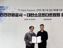 [매일뉴스] 인천관광공사(사장 유지상)는 송도컨벤시아 운영 활성화와 시민 여가 공간 제공을 위해 (사)대한소프트다트협회(회장 방준식)와 업무협약을 체결하고, 12월 11일(목)부터 송도컨벤시아 1층에 ‘소프트다트 체험존’을 본격 운영한다고 밝혔다. 이번 체험존은 매년 7월 송도컨벤시아에서 열리는 ‘K-다트 페스티벌(K-Darts Festival)’의 사전 분위기를 조성하고, 시민들이 일상에서 가볍게 즐길 수 있는 생활체육 저변 확대를 위해 마련되었다. 체험존은 접근성이 우수한 송도컨벤시아 1층 홀로그램실(원스탑지원센터 옆)에 조성되었으며, 별도 예약 없이 매일 오전 9시부터 오후 6시까지 누구나 자유롭게 이용할 수 있다. 체험비는 1회 1,500원이며, 다트 전용 애플리케이션 회원은 1,000원에 이용 가능하다. 수익금 전액은 인천 지역 사회복지시설에 기부된다. 체험존에 설치된 기기는 국제 대회 공식 규격 시스템으로, 앱을 통해 개인 기록을 관리하고 전 세계 이용자와 실시간으로 온라인 대전을 즐길 수 있다. 소연수 송도컨벤시아사업단장은 “점심시간에 가볍게 들러 소프트다트의 매력을 경험하고 활력을 얻을 수 있는 공간이 되길 바란다”며, “체험을 계기로 남녀노소