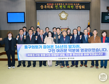 [매일뉴스] 인천 중구의회(의장 이종호)는 21일, 제332회 임시회 개회를 맞아 역대 의원들을 초청하여 36년간의 의정 성과를 되돌아보고 향후 행정체제 개편에 대비한 고견을 청취하는 간담회를 개최했다. 이번 간담회는 인천광역시 행정체제 개편으로 ‘중구’가 ‘제물포구’와 ‘영종구’로 새롭게 출범하게 됨에 따라, 중구의회의 이름으로 진행되는 마지막 회기를 기념하고 선배 의원들의 의정 경험을 공유하기 위해 마련되었다. 이날 본회의장을 찾은 역대 의원들은 제332회 임시회 제1차 본회의를 참관하며 후배 의원들의 의정 활동을 지켜봤으며, 본회의 종료 후에는 전·현직 의원이 함께 기념 촬영과 오찬 간담회를 가졌다. 오찬 간담회에서 역대 의원을 대표해 소감을 밝힌 김기성 전 의장은 “의장 재임 시절 지금의 의회 청사 건립을 추진하며 중구의회의 기초를 다지던 때가 새삼 떠오른다”며 “중구의회는 이제 전환점을 맞이하지만, 선배들의 경험과 후배들의 열정이 더해져 새롭게 태어날 제물포구와 영종구가 성공적으로 정착하기를 바란다”고 전했다. 이종호 의장은 “중구의회라는 이름으로 선배님들을 모시는 마지막 자리인 만큼 감회가 남다르다”며 “1991년 개원 이후 36년간 선배님들이 묵