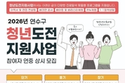[매일뉴스] 연수구(구청장 이재호)는 청년들의 경제 활동과 노동시장 진입을 돕기 위해 ‘2026년 청년도전지원사업’ 참여자를 모집한다. ‘청년도전지원사업’은 6개월 이상 취업·창업·교육·직업훈련 등 구직과 경제 활동에 참여하지 않은 청년을 대상으로, 스스로 역량을 키우고 취업을 준비할 수 있도록 지원하는 사업이다. 구는 총 104명의 참여자를 선발해 개인별 심층 상담을 진행하고, 자신감 회복, 진로 탐색 및 취업역량 강화 교육 등 다양한 프로그램을 제공할 계획이다. 참여자는 자신의 상황에 맞춰 단기(5주), 중기(15주), 장기(25주) 과정을 선택할 수 있으며, 이수 유형에 따라 50만 원에서 최대 350만 원까지 참여 수당과 장려금을 받을 수 있다. 참여 신청은 ‘연수청년자리’ 누리집을 통해 연중 상시 할 수 있으며, 자세한 사항은 연수구 청년도전지원 사업팀(☎032-749-8980)에 문의하면 된다. 이재호 구청장은 “청년들이 다시 구직활동에 도전할 수 있도록 실질적으로 돕는 맞춤형 사업”이라며 “청년들이 자신감을 회복해 일에 도전하고 성공적으로 사회에 자리 잡길 기대한다.”라고 말했다.