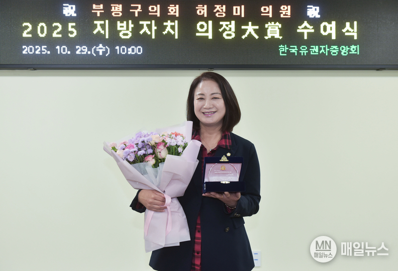 [매일뉴스] 인천 부평구의회 허정미 도시환경위원장(더불어민주당·삼산2동·부개2·3동)이 ‘2025 지방자치 의정대상’을 수상하며 지역 발전을 이끈 모범 의원으로 이름을 올렸다.