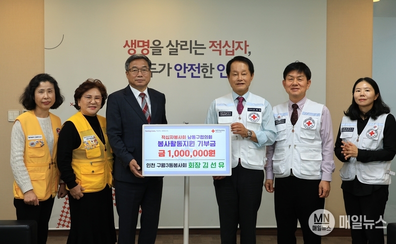 [매일뉴스] 대한적십자사 인천지사(회장 조의영)는 적십자 구월3동봉사회 김선유 회장이 길에서 습득한 돈에 자비를 더해 100만원을 기부했다고 30일 밝혔다.