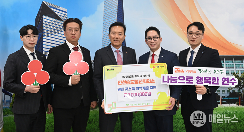 [매일뉴스] 연수구(구청장 이재호)는 지난 11일 인천송도청년회의소(회장 김성철)로부터 지역 내 저소득 취약계층을 위해 써달라며 성금 100만 원을 전달받았다.