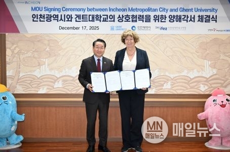 인천광역시(시장 유정복)는 12월 17일 인천시청 접견실에서 벨기에 겐트대학교와 상호협력을 위한 양해각서(MOU)를 체결했다고 밝혔다.