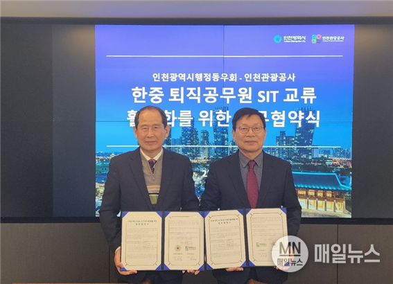 인천관광공사(사장 유지상, 이하 ‘공사’)와 인천광역시행정동우회(회장 조동암, 이하 ‘행정동우회’)는 4일 인천관광공사 디지털 회의실에서 ‘한·중 퇴직공무원 특수목적관광 교류 활성화를 위한 업무협약(MOU)’을 체결했다.