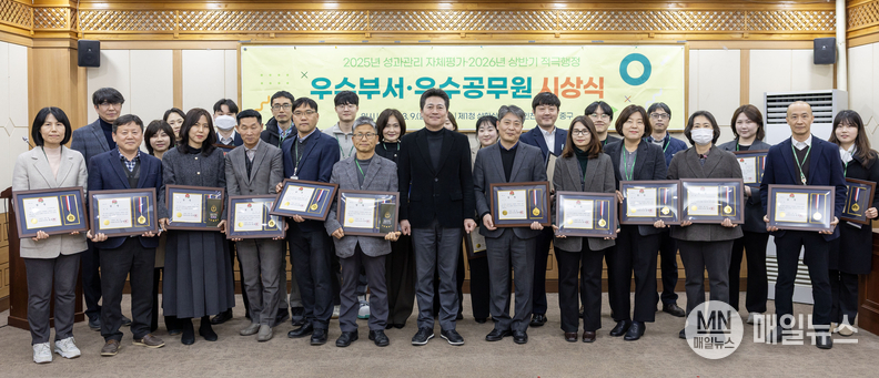 먼저 성과관리 자체평가 결과, ‘최우수’ 부서로는 경제산업과, ‘우수’는 총무과·안전관리과·기획예산실, ‘장려’는 문화관광과·평생교육과·건강증진과·노인장애인과·도시개발과·교통과·도시공원과가 선정됐다.