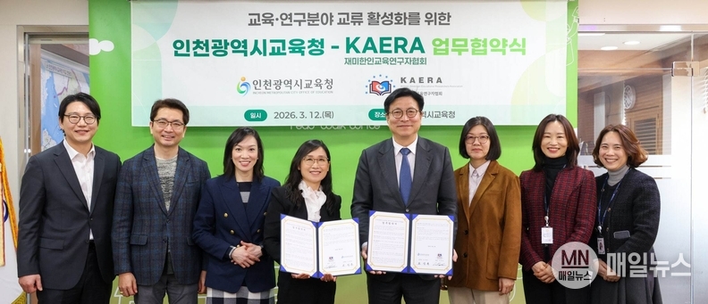[매일뉴스] 인천광역시교육청(교육감 도성훈)은 12일 재미한인교육연구자협회(KAERA, 회장 이찬순)와 ‘글로벌 교육 협력 및 읽걷쓰교육 확산을 위한 업무협약’을 체결했다.