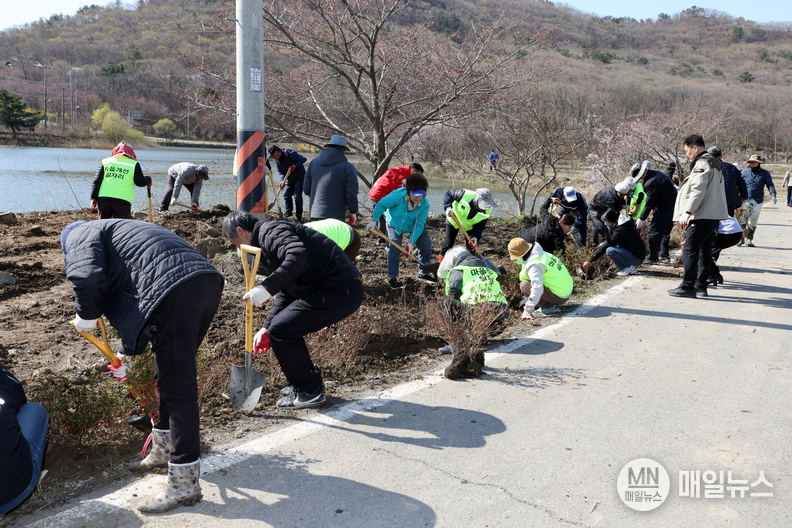참석자들은 염촌저수지 일원에 벚나무 70주, 철쭉 및 연산홍 700주를 식재하며 지역 환경 개선과 녹지 공간 확충에 힘을 모았다.