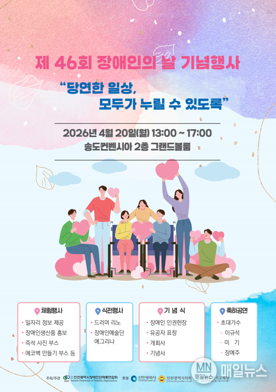 인천광역시(시장 유정복)는 4월 20일 인천 송도컨벤시아 그랜드볼룸에서 ‘제46회 장애인의 날 기념행사’를 개최했다고 밝혔다.