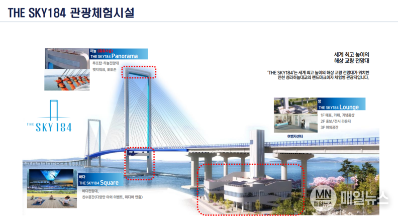 인천경제자유구역청은 청라국제도시와 영종국제도시를 연결하는 청라하늘대교에 조성된 관광시설 ‘더 스카이184(THE SKY184)’를 오는 5월 시민들에게 개방한다고 밝혔다.