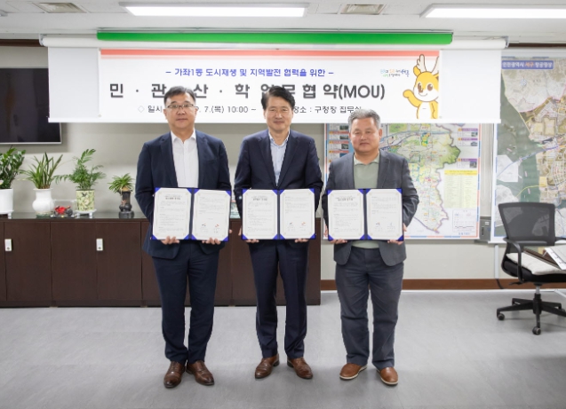[매일뉴스] 인천 서구는 7일 인천서구강소특구사업단과 가좌1동 도시재생사업 추진을 위한 업무협약(MOU)을 체결했다고 밝혔다.이 사업은 동 행정복지센터 주변 약 165,000㎡(50,000평) 원도심지역에 주요 거점시설 설치 및 사회 기반시설을 정비하여 물리적 환경개선과 더불어 사회적․경제적 도시재생활성화를 위한 사업이다.