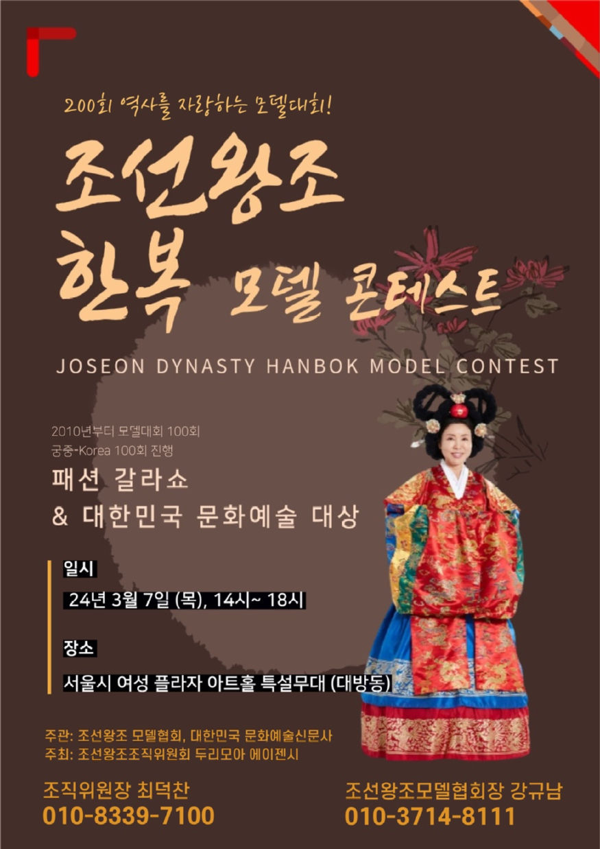 [매일뉴스 강규남 기자] = 2023년 송년 12월 21일(목요일) 페스티벌이 성황리에 종료되었으며 조선왕조 한복 모델 콘테스트에 참가한 영광의 수상자는 다음과 같다.