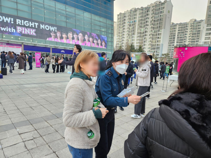 [박병철 기자 ] = 인천삼산경찰서 (서장 김선권)는 흥국생명과 GS칼텍스 여자배구 경기가 있던 지난 15일 삼산체육관에 경기를 관람하기 위해 모인 6천여명의 부평시민을 대상으로 체감치안 향상을 위한 다양한 홍보 활동을 실시했다